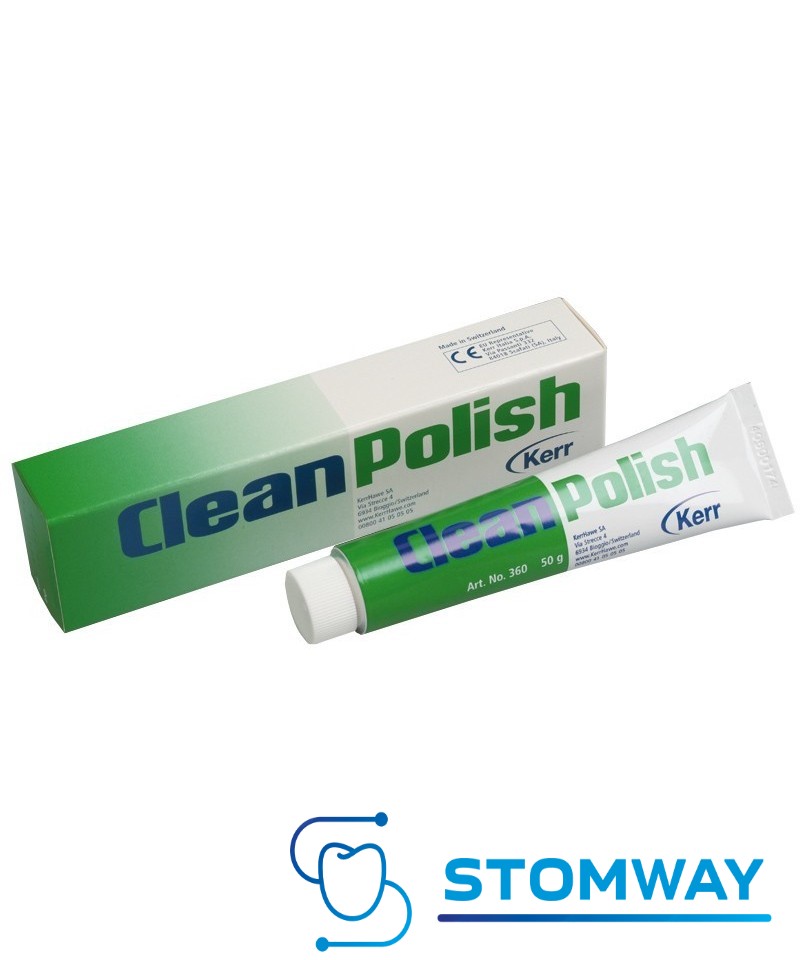 Паста полировочная стоматологическая: Cleanpolish (КлинПолиш) на основе минералов из породы риолитов для чистки и полировки зубов, а также для предварительной полировки пломб из золота, амальгамы и композитов. Без фтора и анисово й отдушки. Цвет зеленый. Упаковка 50 г пасты в тюбике.