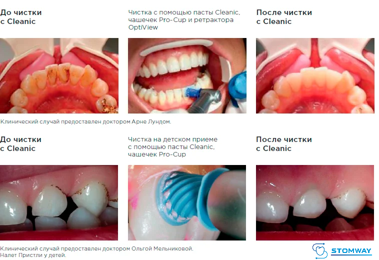 Чистку пастой Cleanicтм рекомендуется производить с помощью полировочных чашечек Pro-Cup. Для комфорта пациента и удобства выполнения процедуры следует использовать ретрактор (например, OptiView от KERR)