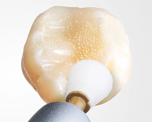 - Для придания поверхности зеркального блеска используйте систему для полировки PoGo, полировочные пасты для композитов Prisma Gloss или аналогичные.