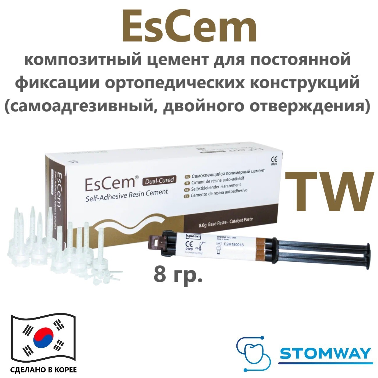 EsCem TW (8гр.) ЭсЦем TW, композитный цемент для постоянной фиксации ортопедических конструкций