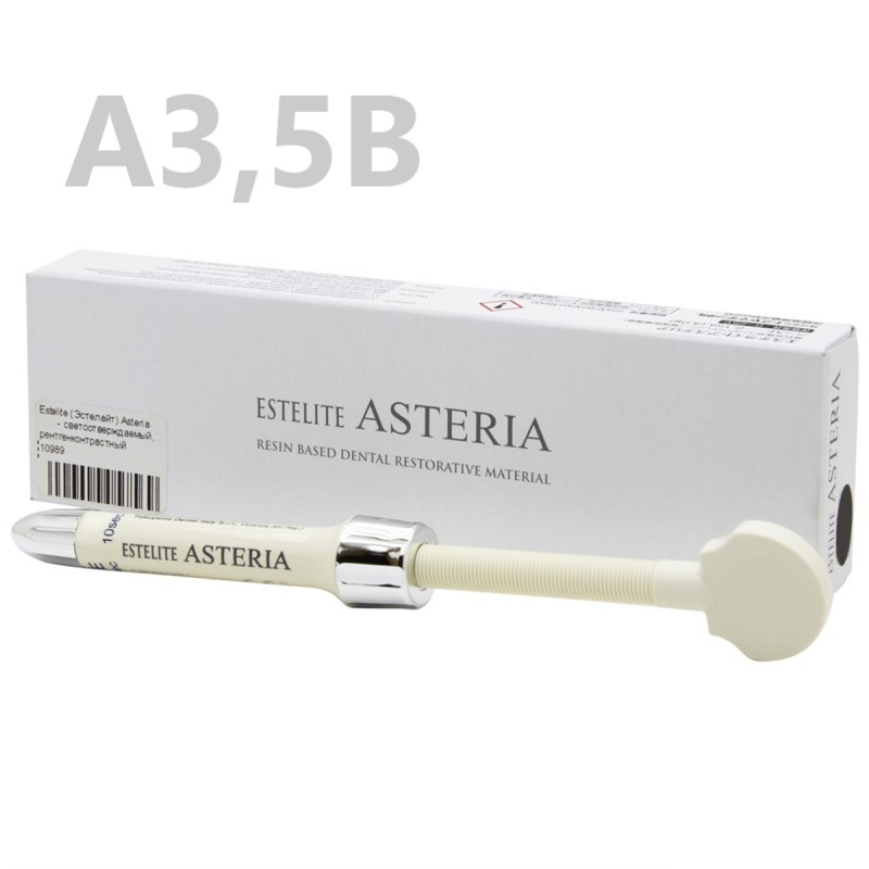 Estelite Asteria Syringe (оттенок A3.5B) - светоотверждаемый, рентгенконтрастный композиционный материал, предназначенный для использования при реставрации передних и боковых зубов. Подходит для кариозных полостей всех классов, включая реставрации, требующие минимального препарирования полости или без ее препарирования.