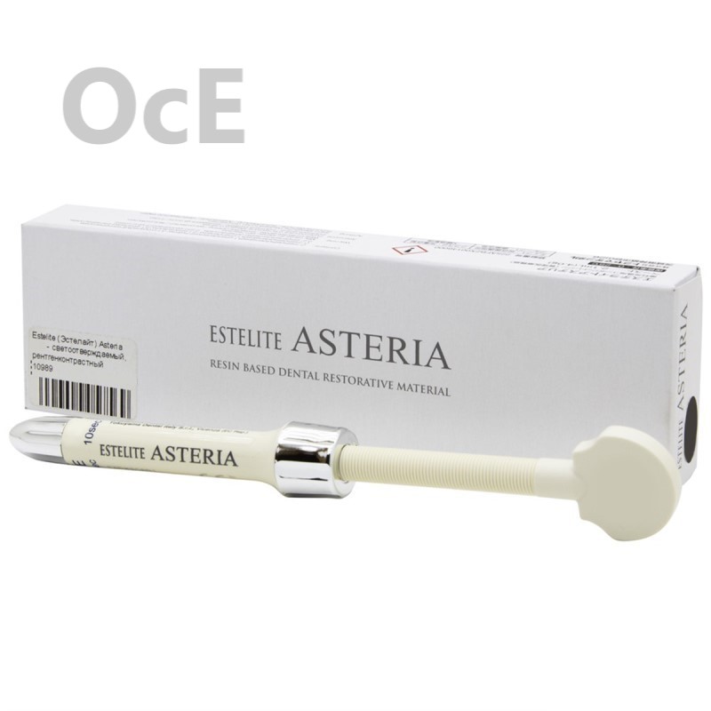 Estelite Asteria Syringe (оттенок OcE) - светоотверждаемый, рентгенконтрастный композиционный материал, предназначенный для использования при реставрации передних и боковых зубов. Подходит для кариозных полостей всех классов, включая реставрации, требующие минимального препарирования полости или без ее препарирования.