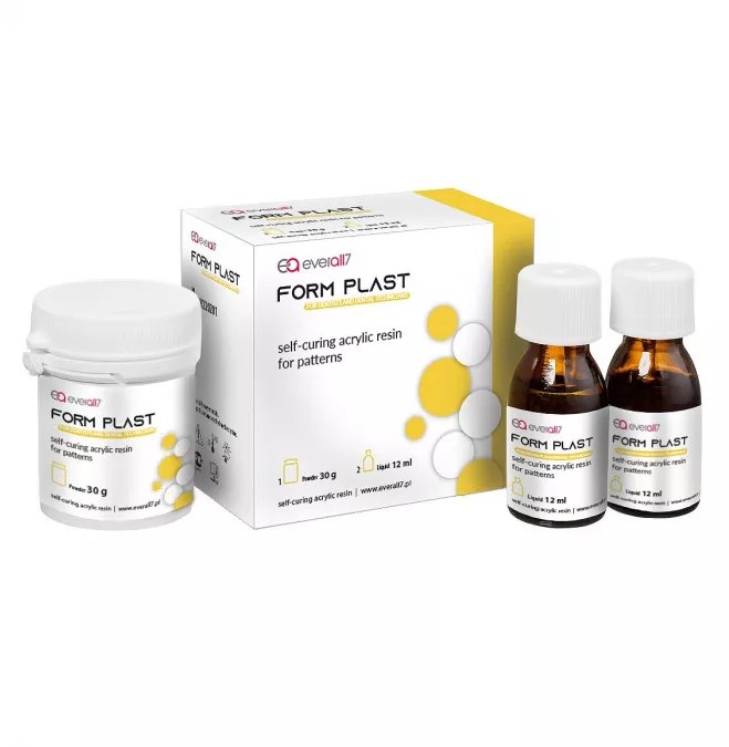 Form Plast - самотвердеющая беззольная акриловая пластмасса для моделирования различных элементов при изготовлении протезов: коронок, телескопических коронок, кламмеров, мостов адгезивного типа, а также для вспомогательных работ как в зуботехнической лаборатории, так и в стоматологическом кабинете. Производитель: Everall7, Польша.