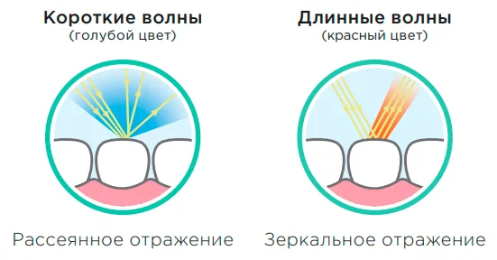 Точно так же, как ткани естественного зуба, и в отличие от других универсальных композитов, Harmonizeтм адаптируется к длине волны, рассеянно отражая свет с короткими волнами и зеркально отражая свет с длинными волнами. Это обеспечивает улучшенное слияние реставрации с натуральными тканями зуба в сравнении с ведущими композитными материалами.