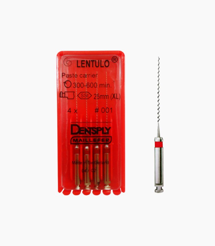 - Лентуло Dentsply Maillefer поставляются в наборах по 4 штуки, упакованных в пластиковой кассете. Инструмент нестерильный, перед использованием требуется автоклавирование.