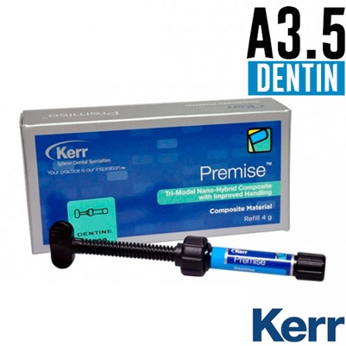 Premise Dentine (Премиз Дентин) - это высокоэстетичный наногибридный универсальный композитный материал. Premise является одним из самых высоконаполненных композитов на рынке (наполненность 84 %). Это позволяет его успешно использовать как на фронтальных зубах, где снижается риск сколов, так на жевательных зубах, где будет наблюдаться низкая стираемость композита со временем. Благодаря трем типам наполнителей Premise™ обладает высоко эстетическими свойствами, великолепно полируется, имеет высокую механическую прочность и сниженную полимеризационную усадку.