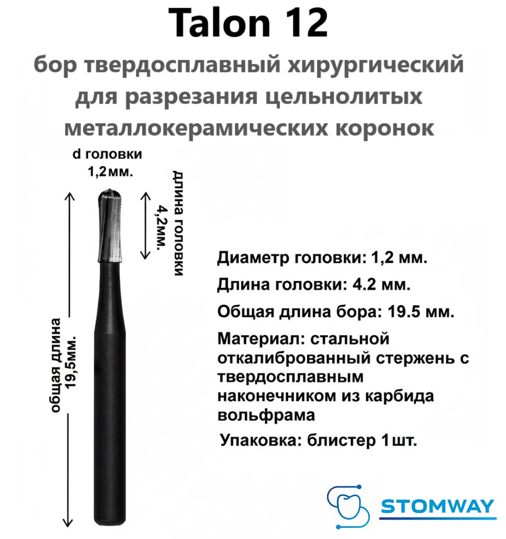 Talon 12 (1шт.) Талон 12, бор твердосплавный для разрезания коронок